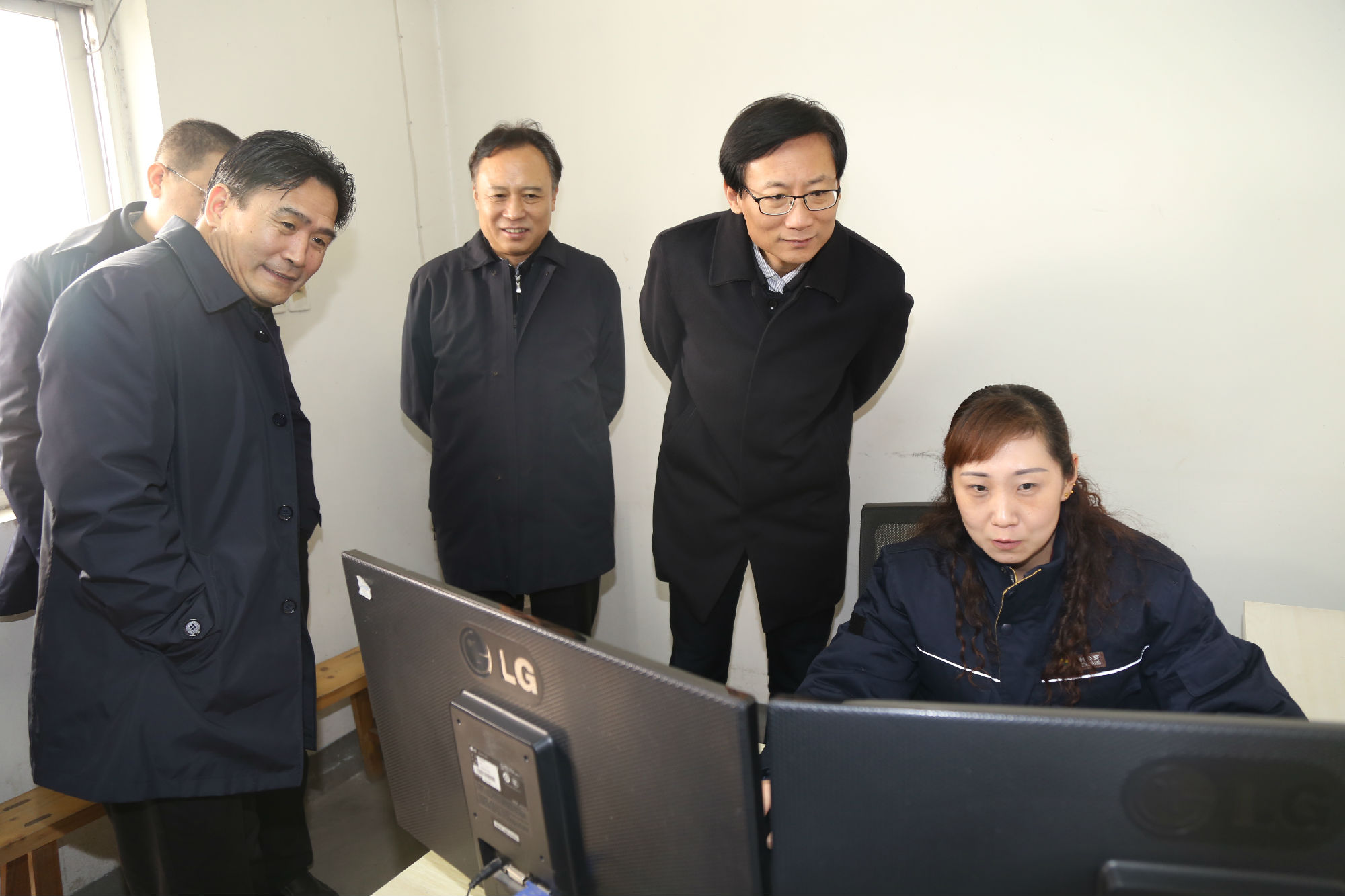 趙立群首先來到京徐公司76路、49路調(diào)度室,察看了調(diào)度室的工作環(huán)境和保暖措施,詳細(xì)詢問了駕駛員生產(chǎn)生活、用餐休息等情況。隨后,來到二級智能調(diào)度平臺,認(rèn)真聽取了智能調(diào)度系統(tǒng)建設(shè)及運行情況,平臺工作人員現(xiàn)場演示了系統(tǒng)中運營調(diào)度、車輛定位、安全提示、實時監(jiān)控等操作,使其更直觀的了解智能調(diào)度系統(tǒng)的性能。最后,趙立群等一行又視察了保養(yǎng)車間,與修理人員進行了親切的交談。